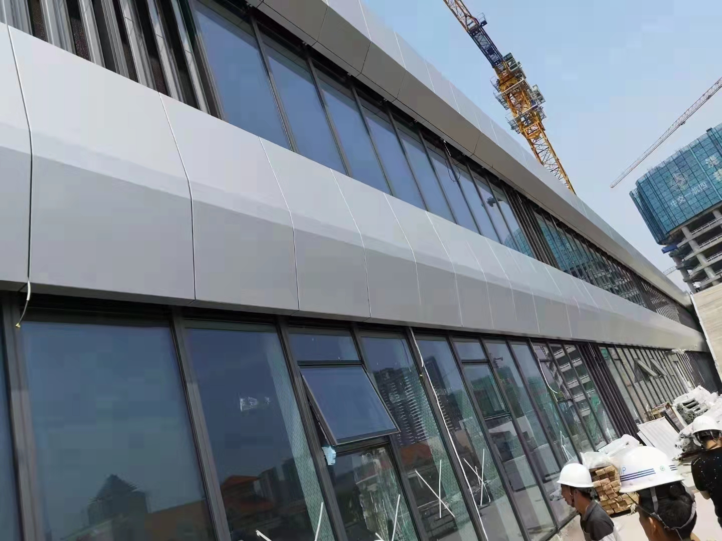 在安裝過程中抗外力性能超群。表面涂層采用氟碳噴涂涂料,保證表面色澤均勻,抗紫外線輻射,抗氧化,超強耐腐蝕,鋁單板安裝應(yīng)按板塊分配圖上板號安置就位,明膠縫部位安裝角碼組裝好,并檢查相鄰兩塊板角碼是否錯開,試裝檢查其水平度、垂直度,然后用不銹鋼螺栓裝配,試固定在主副龍骨上,調(diào)整橫豎縫間隙符合要求再固定。